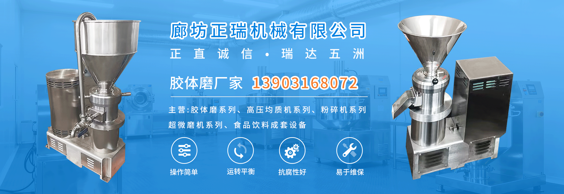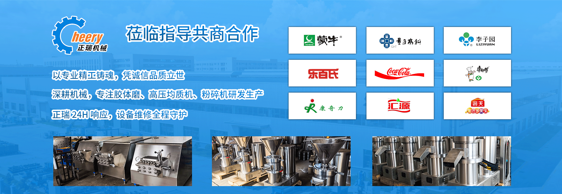 公司主要產(chǎn)品有JMS系列膠體磨、JJ系列高壓均質(zhì)機(jī)、FS系列粉碎機(jī)、CWM系列超微磨機(jī)、PG破骨機(jī)系列以及食品飲料成套設(shè)備等。產(chǎn)品廣泛應(yīng)用于食品、醫(yī)藥、化工等領(lǐng)域,暢銷國內(nèi)并出口歐美、非洲、東南亞等國家,深受用戶好評。